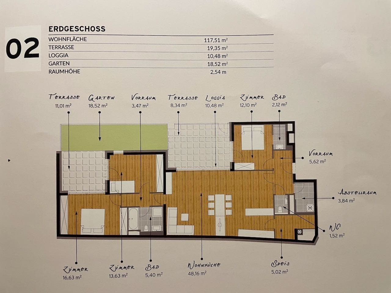 Die Wohnungen sind mit hochwertigen Keramikgegenständen, Echtholzparkettböden ausgestattet. Alle Wohnungen weisen einen Balkon, Loggia oder Terrasse auf.