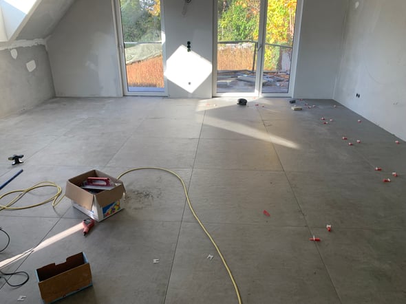 Erschwerend kam noch dazu, dass es sich hier um eine klassische Baulückenverbauung (direkter Anbau an die beiden Nachbargebäude) handelt und wir sehr gefordert waren, bei der Baustellenlogistik